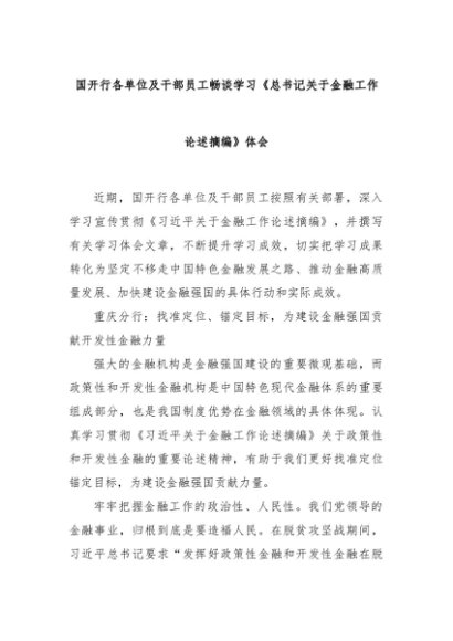 【七哥公文】2024年:国开行各单位及干部员工畅谈学习《总书记关于金融工作论述摘编》体会+更多免费公文+VX:QiGeGongWen2024
