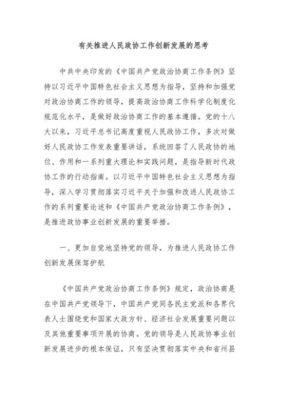 / 【七哥公文】2024年:有关推进人民政协工作创新发展的思考+更多免费公文+VX:QiGeGongWen2024
