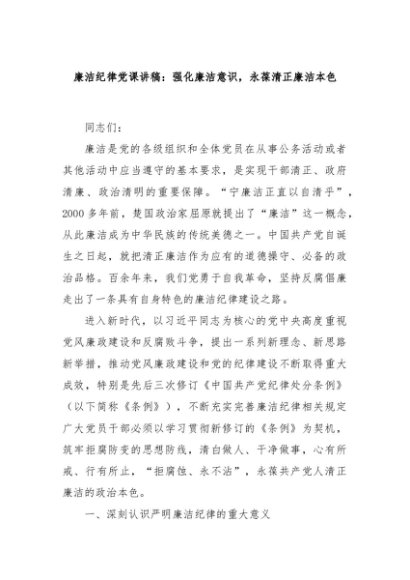 / 【七哥公文】2024年:廉洁纪律党课讲稿:强化廉洁意识,永葆清正廉洁本色+更多免费公文+VX:QiGeGongWen2024