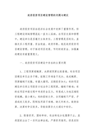 【七哥公文】2024年:政府投资项目建设管理的问题与建议+更多免费公文+VX:QiGeGongWen2024