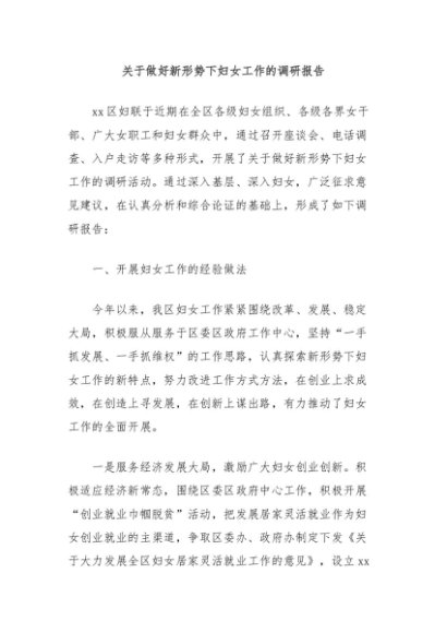 【七哥公文】2024年:关于做好新形势下妇女工作的调研报告+更多免费公文+VX:QiGeGongWen2024