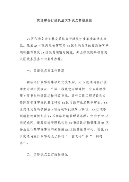 【七哥公文】2024年:交通综合行政执法改革试点典型经验+更多免费公文+VX:QiGeGongWen2024