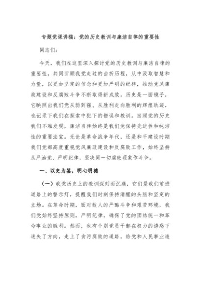/ 【七哥公文】2024年:专题党课讲稿:党的历史教训与廉洁自律的重要性+更多免费公文+VX:QiGeGongWen2024
