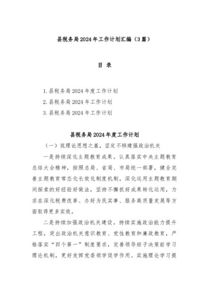 / 【七哥公文】2024年:(3篇)县税务局2024年工作计划汇编+更多免费公文+VX:QiGeGongWen2024