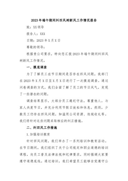 / 【七哥公文】2024年:2023年端午期间纠四风树新风工作情况报告+更多免费公文+VX:QiGeGongWen2024