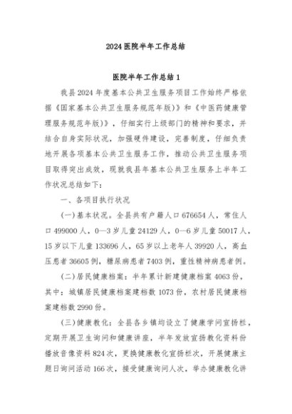 / 【七哥公文】2024年:2024医院半年工作总结+更多免费公文+VX:QiGeGongWen2024