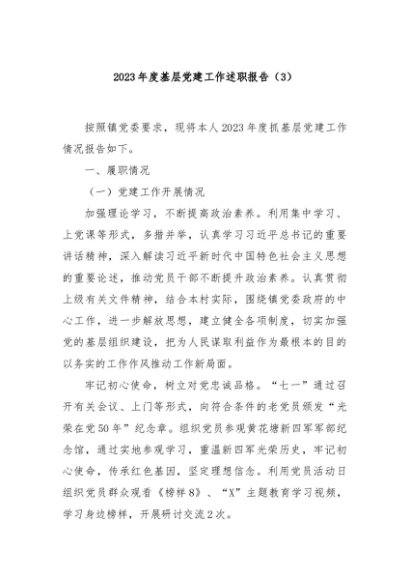/ 【七哥公文】2024年:2023年度基层党建工作述职报告(3)+更多免费公文+VX:QiGeGongWen2024