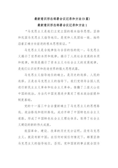 / 【七哥公文】2024年:(9篇)最新意识形态部署会议记录和方法+更多免费公文+VX:QiGeGongWen2024
