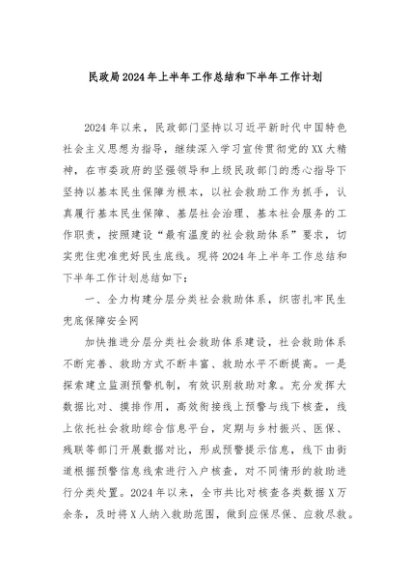 / 【七哥公文】2024年:民政局2024年上半年工作总结和下半年工作计划+更多免费公文+VX:QiGeGongWen2024