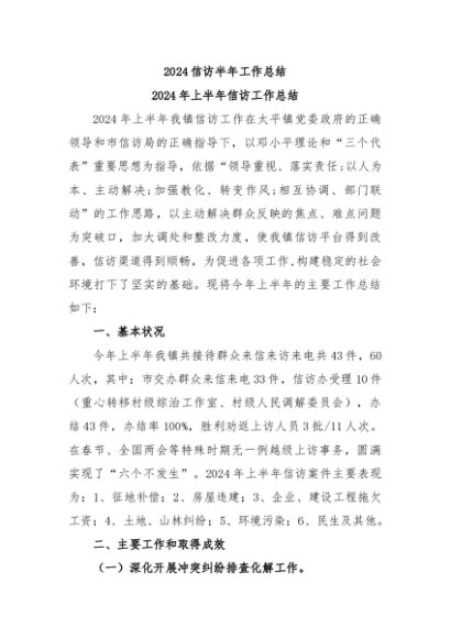 / 【七哥公文】2024年:2024信访半年工作总结+更多免费公文+VX:QiGeGongWen2024