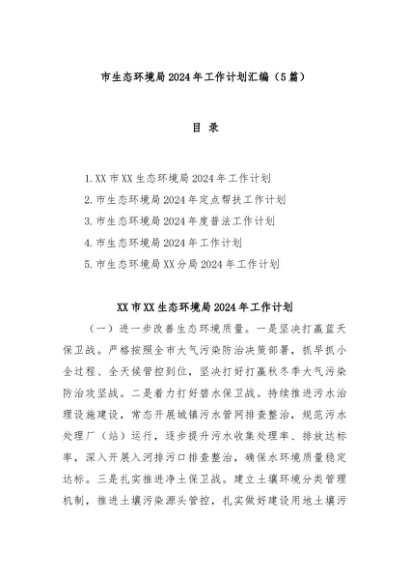 / 【七哥公文】2024年:(5篇)市生态环境局2024年工作计划汇编+更多免费公文+VX:QiGeGongWen2024
