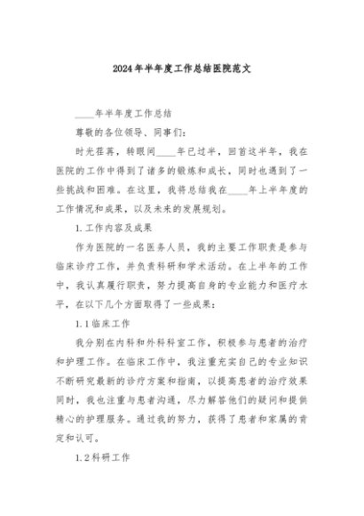 / 【七哥公文】2024年:2024年半年度工作总结医院范文+更多免费公文+VX:QiGeGongWen2024