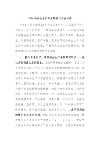 / 【七哥公文】2024年:2024年安全生产月主题研讨发言材料+更多免费公文+VX:QiGeGongWen2024