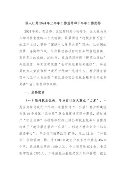 / 【七哥公文】2024年:区人社局2024年上半年工作总结和下半年工作安排+更多免费公文+VX:QiGeGongWen2024
