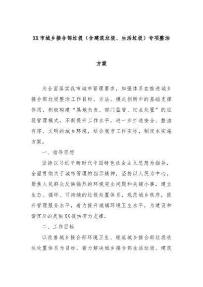 【七哥公文】2024年:XX市城乡接合部垃圾(含建筑垃圾、生活垃圾)专项整治方案+更多免费公文+VX:QiGeGongWen2024