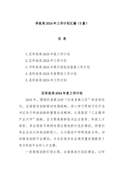/ 【七哥公文】2024年:(5篇)科技局2024年工作计划汇编+更多免费公文+VX:QiGeGongWen2024