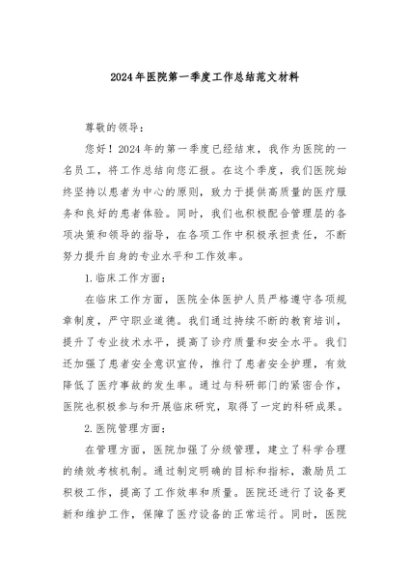/ 【七哥公文】2024年:2024年医院第一季度工作总结范文材料+更多免费公文+VX:QiGeGongWen2024
