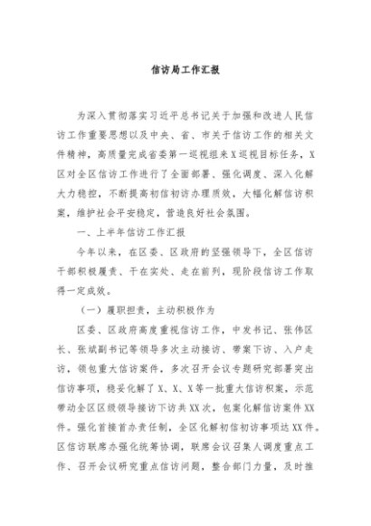 / 【七哥公文】2024年:信访局工作汇报+更多免费公文+VX:QiGeGongWen2024