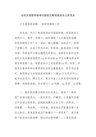 / 【七哥公文】2024年:在机关党组织标准化规范化建设座谈会上的发言+更多免费公文+VX:QiGeGongWen2024