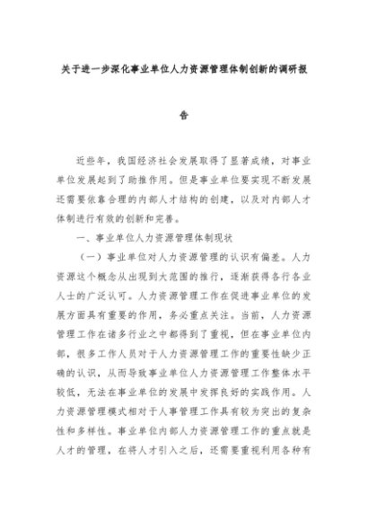 【七哥公文】2024年:关于进一步深化事业单位人力资源管理体制创新的调研报告+更多免费公文+VX:QiGeGongWen2024