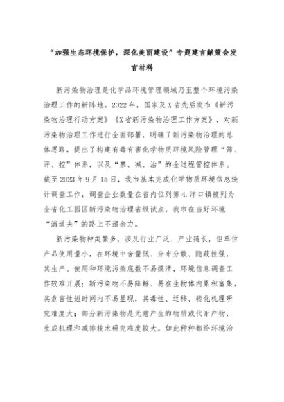 【七哥公文】2024年:“加强生态环境保护,深化美丽建设”专题建言献策会发言材料+更多免费公文+VX:QiGeGongWen2024