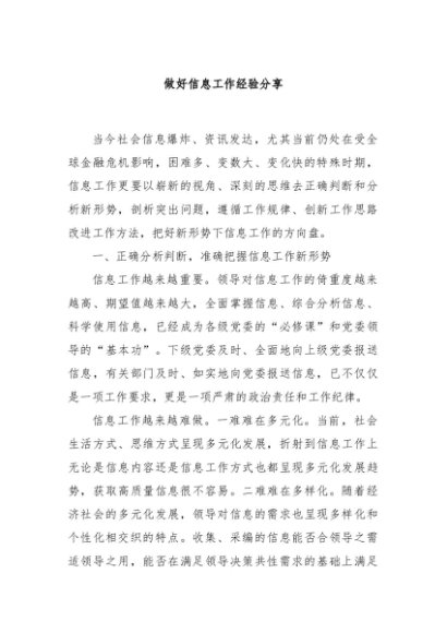 【七哥公文】2024年:做好信息工作经验分享+更多免费公文+VX:QiGeGongWen2024