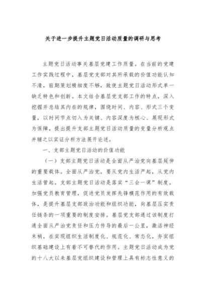 【七哥公文】2024年:关于进一步提升主题党日活动质量的调研与思考+更多免费公文+VX:QiGeGongWen2024