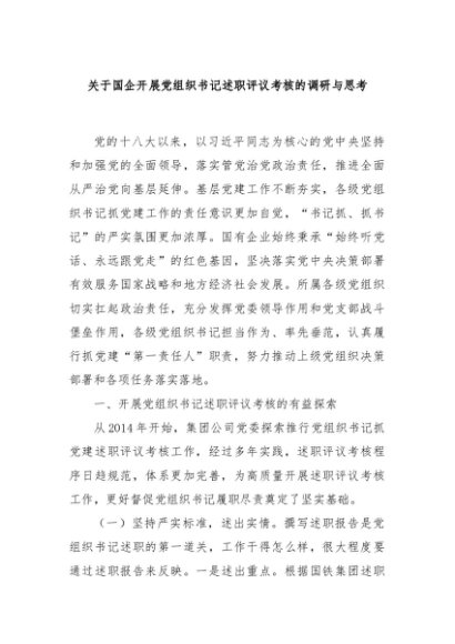 / 【七哥公文】2024年:关于国企开展党组织书记述职评议考核的调研与思考+更多免费公文+VX:QiGeGongWen2024