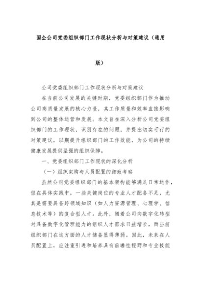 【七哥公文】2024年:国企公司党委组织部门工作现状分析与对策建议(通用版)+更多免费公文+VX:QiGeGongWen2024
