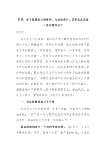 【七哥公文】2024年:党课:学习弘扬焦裕禄精神,为推进党和人民事业发展注入强劲精神动力+更多免费公文+VX:QiGeGongWen2024