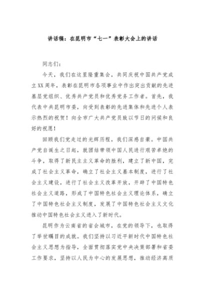 / 【七哥公文】2024年:讲话稿:在昆明市“七一”表彰大会上的讲话+更多免费公文+VX:QiGeGongWen2024