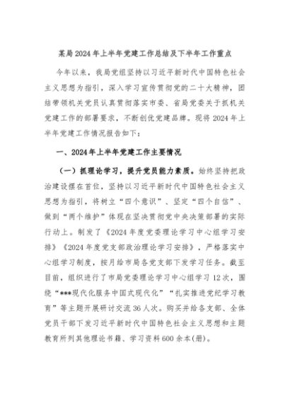 / 【七哥公文】2024年:某局2024年上半年党建工作总结及下半年工作重点+更多免费公文+VX:QiGeGongWen2024