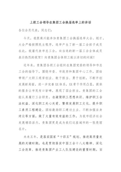 / 【七哥公文】2024年:上级工会领导在集团工会换届选举上的讲话+更多免费公文+VX:QiGeGongWen2024