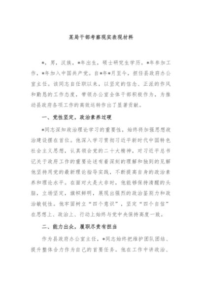 / 【七哥公文】2024年:某局干部考察现实表现材料+更多免费公文+VX:QiGeGongWen2024