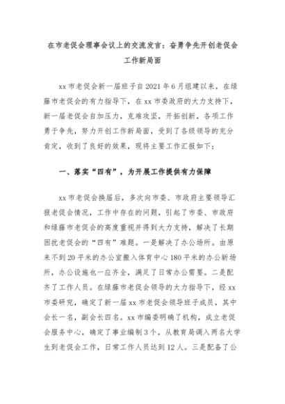 【七哥公文】2024年:在市老促会理事会议上的交流发言:奋勇争先开创老促会工作新局面+更多免费公文+VX:QiGeGongWen2024