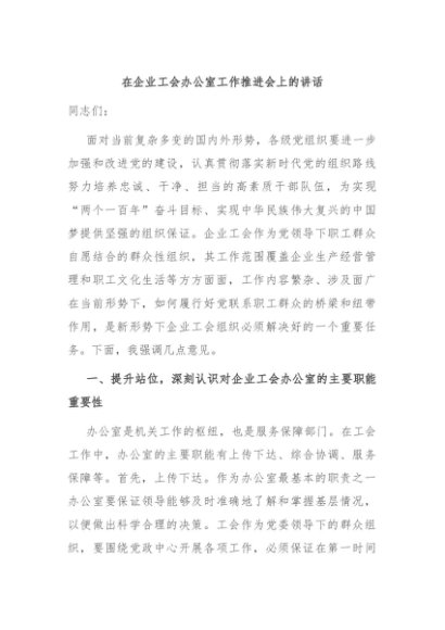 / 【七哥公文】2024年:在企业工会办公室工作推进会上的讲话+更多免费公文+VX:QiGeGongWen2024