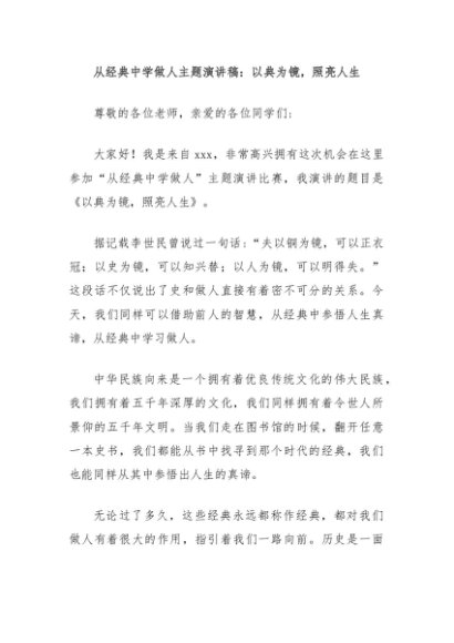 / 【七哥公文】2024年:从经典中学做人主题演讲稿:以典为镜,照亮人生+更多免费公文+VX:QiGeGongWen2024