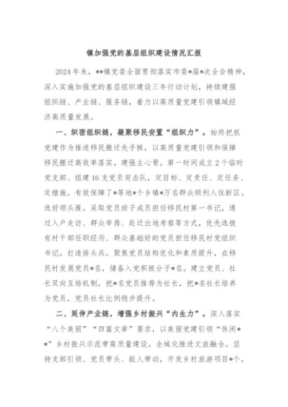 / 【七哥公文】2024年:镇加强党的基层组织建设情况汇报+更多免费公文+VX:QiGeGongWen2024