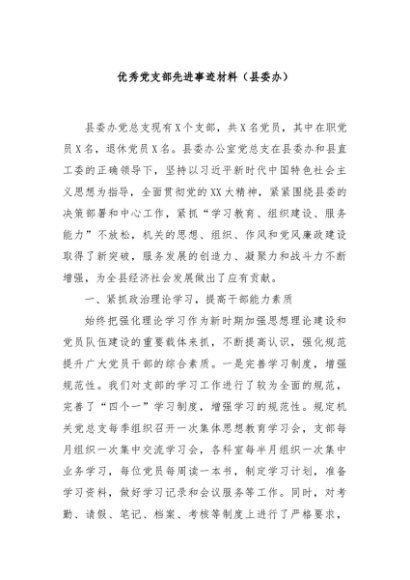 / 【七哥公文】2024年:优秀党支部先进事迹材料(县委办)+更多免费公文+VX:QiGeGongWen2024