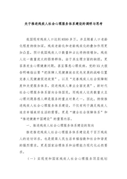 / 【七哥公文】2024年:关于推进残疾人社会心理服务体系建设的调研与思考+更多免费公文+VX:QiGeGongWen2024
