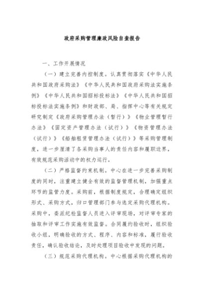 / 【七哥公文】2024年:政府采购管理廉政风险自查报告+更多免费公文+VX:QiGeGongWen2024