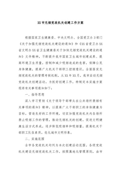 【七哥公文】2024年:XX市无烟党政机关创建工作方案+更多免费公文+VX:QiGeGongWen2024