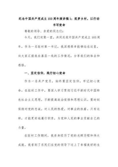 【七哥公文】2024年:(3篇)2024年最新纪念党的生日103周年演讲稿《筑梦乡村主题演讲稿》+更多免费公文+VX:QiGeGongWen2024