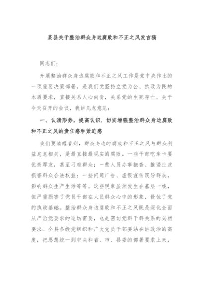 / 【七哥公文】2024年:某县关于整治群众身边腐败和不正之风发言稿+更多免费公文+VX:QiGeGongWen2024