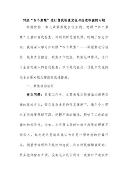【七哥公文】2024年:对照“四个聚焦”进行自我检查:发现与改进存在的问题+更多免费公文+VX:QiGeGongWen2024