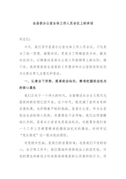 / 【七哥公文】2024年:在县委办公室全体工作人员会议上的讲话+更多免费公文+VX:QiGeGongWen2024