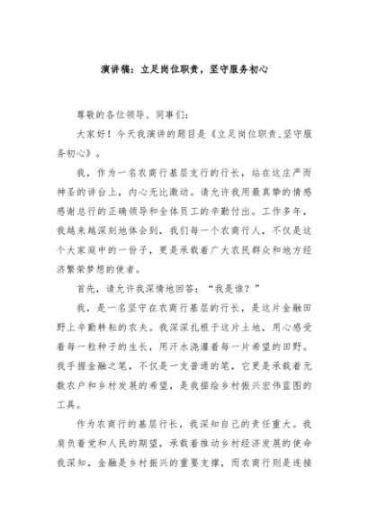 / 【七哥公文】2024年:演讲稿:立足岗位职责,坚守服务初心+更多免费公文+VX:QiGeGongWen2024