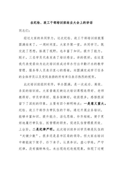 【七哥公文】2024年:在纪检、政工干部培训班结业大会上的讲话+更多免费公文+VX:QiGeGongWen2024