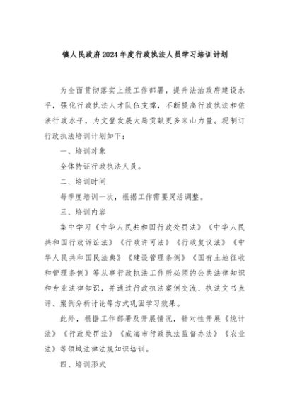 / 【七哥公文】2024年:镇人民政府2024年度行政执法人员学习培训计划+更多免费公文+VX:QiGeGongWen2024