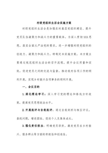 / 【七哥公文】2024年:村级党组织生活会实施方案+更多免费公文+VX:QiGeGongWen2024